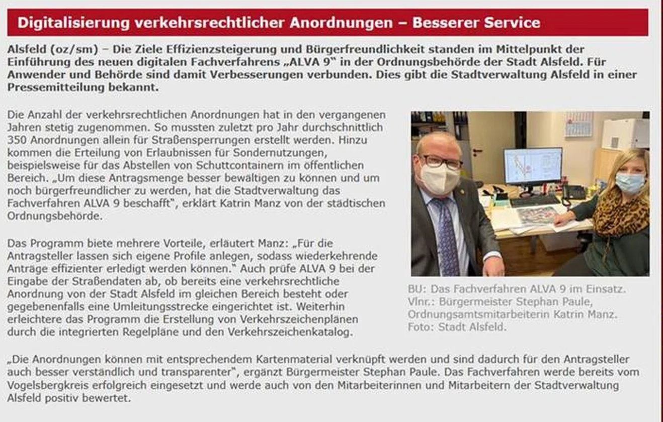 Ein Erfahrungsbericht aus der Praxis unter Einsatz unseres Fachverfahrens ALVA 9 – Die Stadtverwaltung Alsfeld berichtet: